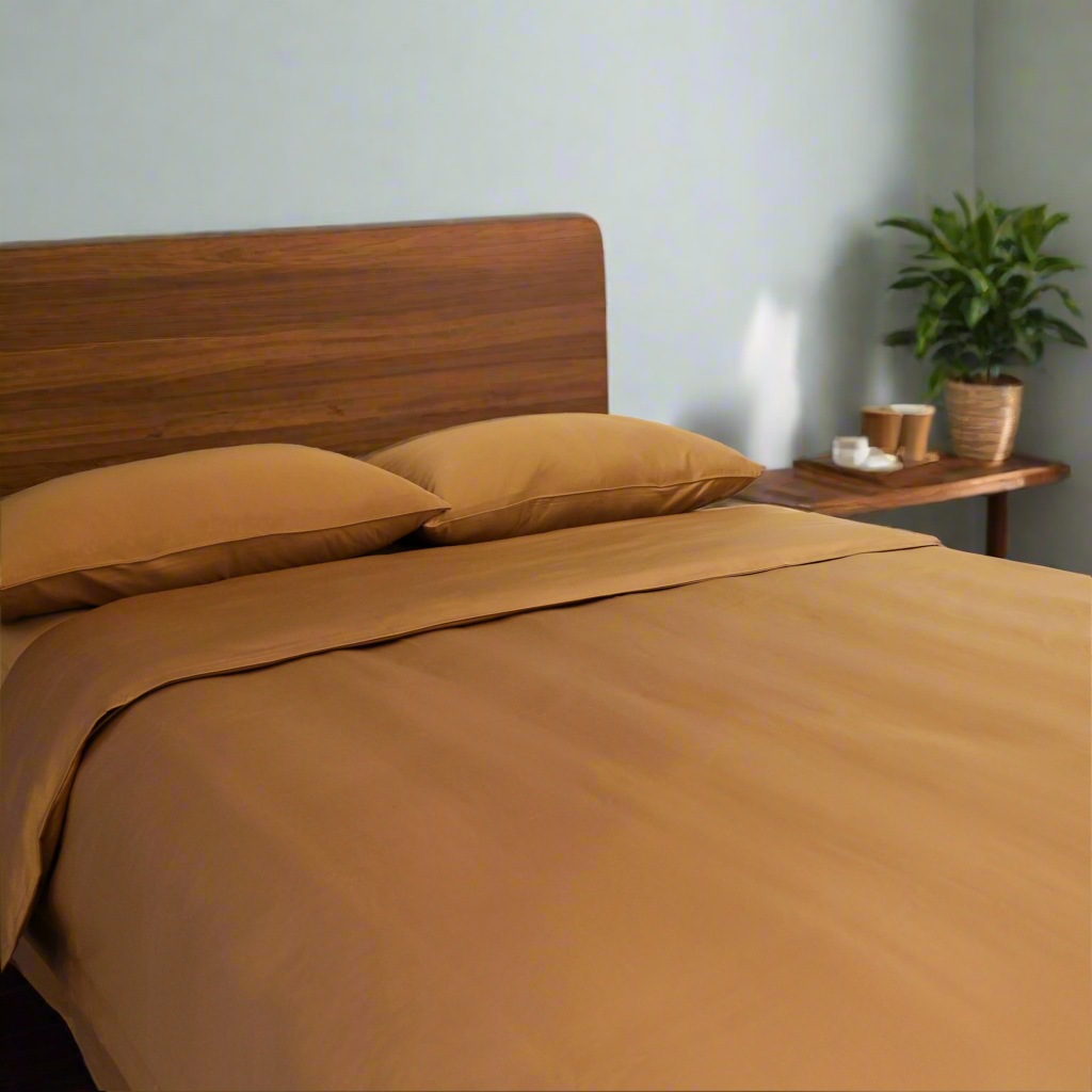Upgrade your bedroom with the EcoDrop Organic Cotton Bedding Set, crafted from 100% GOTS certified organic cotton for pure comfort and sustainable living. This ready-to-ship set includes a quilt cover, flat sheet, and two pillowcases, designed in timeless solid colours: Dune, Terracotta, Storm, and Olive Green.